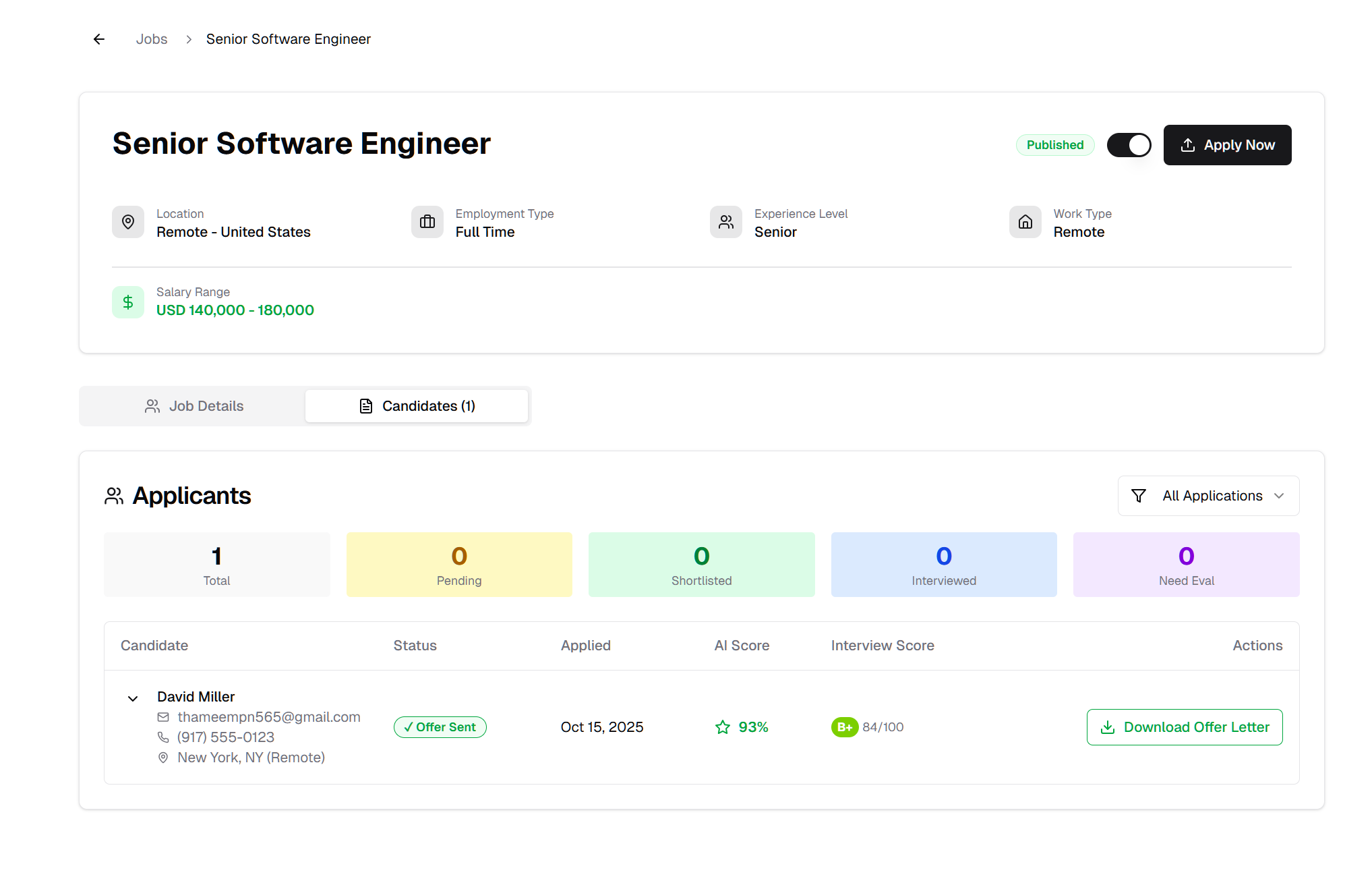 Offer letters are now delivered as professional PDF attachments for candidate convenience.